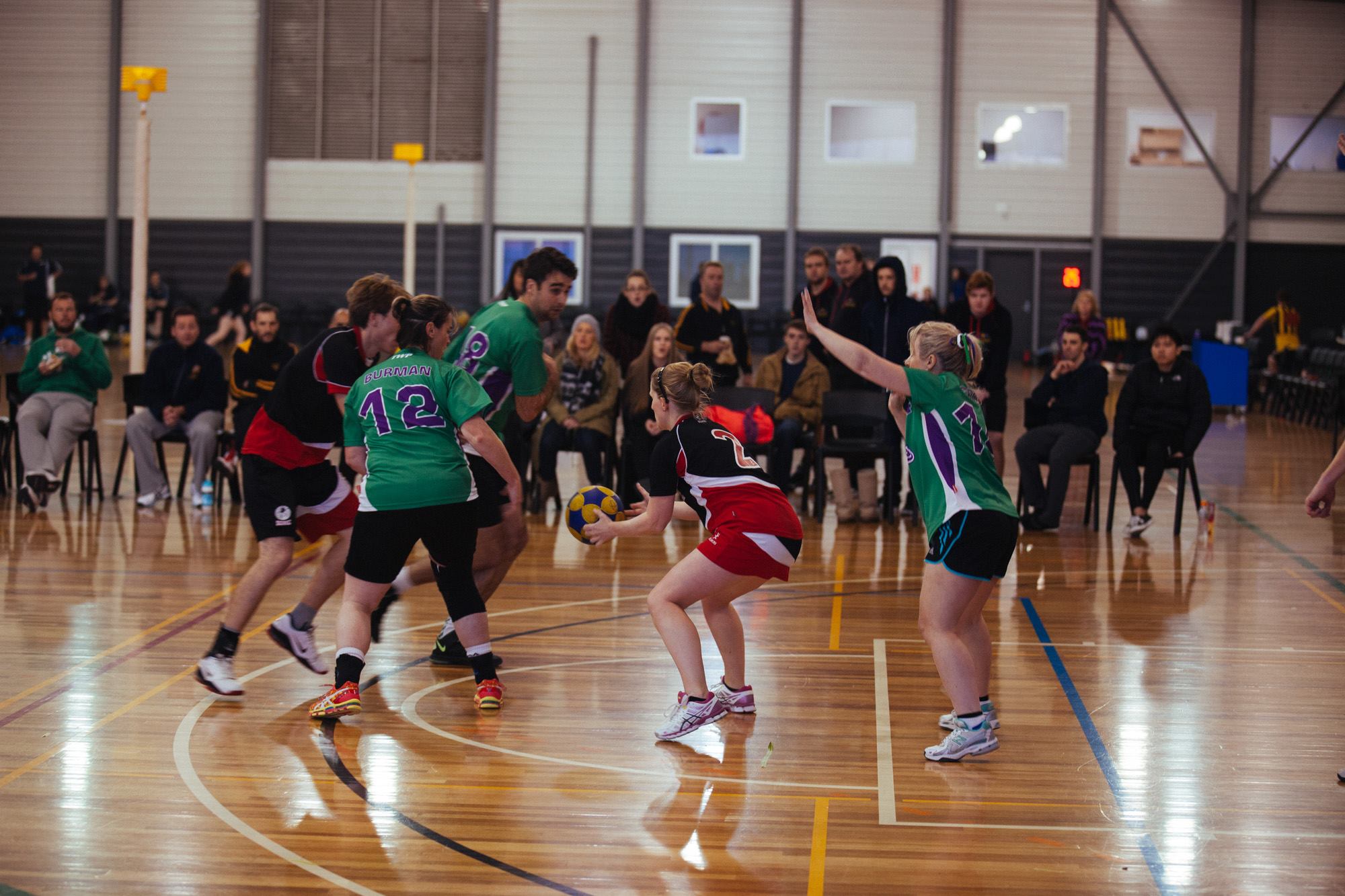 Hoping to get a win on the board for Sydney, the Blacks started strong. Good interplay between Sarah, Gemma and Simon drawing fouls from shooting opportunities, with two penalties converted by Graham to put Sydney in an early lead. Boomers (who won the 2014 tournament) pulled it back to 2-2 before half time leaving the game in the balance. After the break, Simon grabbed a rebound between two defenders before passing to the unmarked Graham to score a short range shot. Graham restored the Redbacks two-goal lead with a drop off from the rebound to leave Sydney with an opportunity for a big upset. It wasn’t to be however, with Boomers coming back to take a deserved 5-4 victory amid several long shots from Cheya which bounced off the korf drawing gasps from the capacity crowd. A narrow defeat whilst not playing to the best of their ability left the Blacks optimistic for the rest of the tournament.