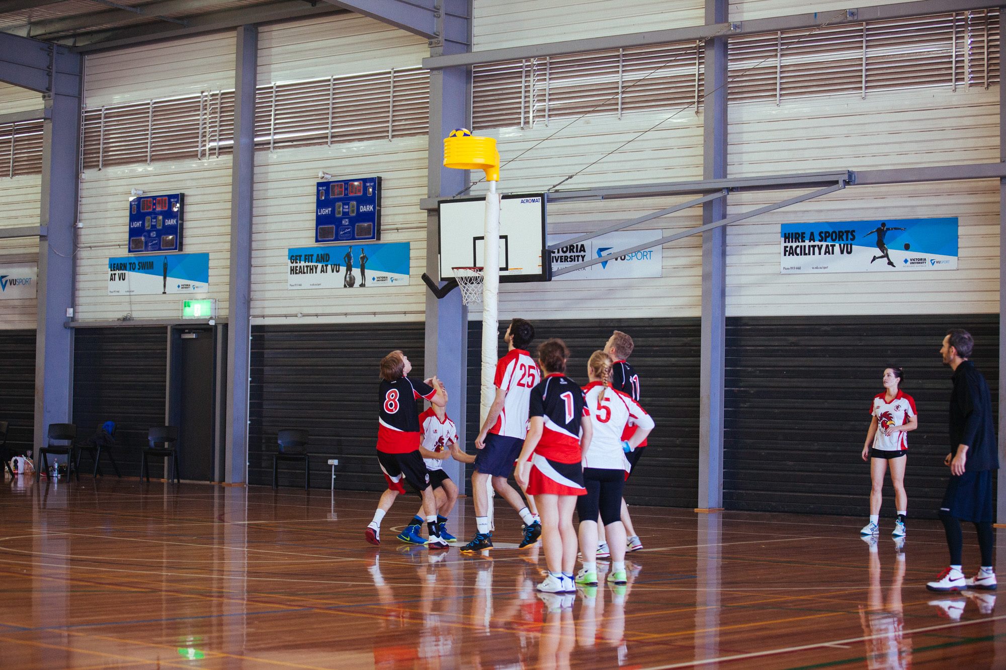 In the last match of the day, the Blues were hoping to end on a high. Unfortunately, Arista’s shooting was much improved in comparison to the game against the Blacks. Compounding this, Sydney’s shooting just wouldn’t find the basket – with several good opportunities going close but not close enough. In one of those games where nothing went to plan, Ben made a great move to get free but in the act of shooting went over his ankle. With no subs remaining, he played on until the end of the match but subsequent swelling ruled him out of the second day’s play. One bright spot in the match was Karen’s long shot from way out, showing everyone that she still has it after a couple of years without playing.